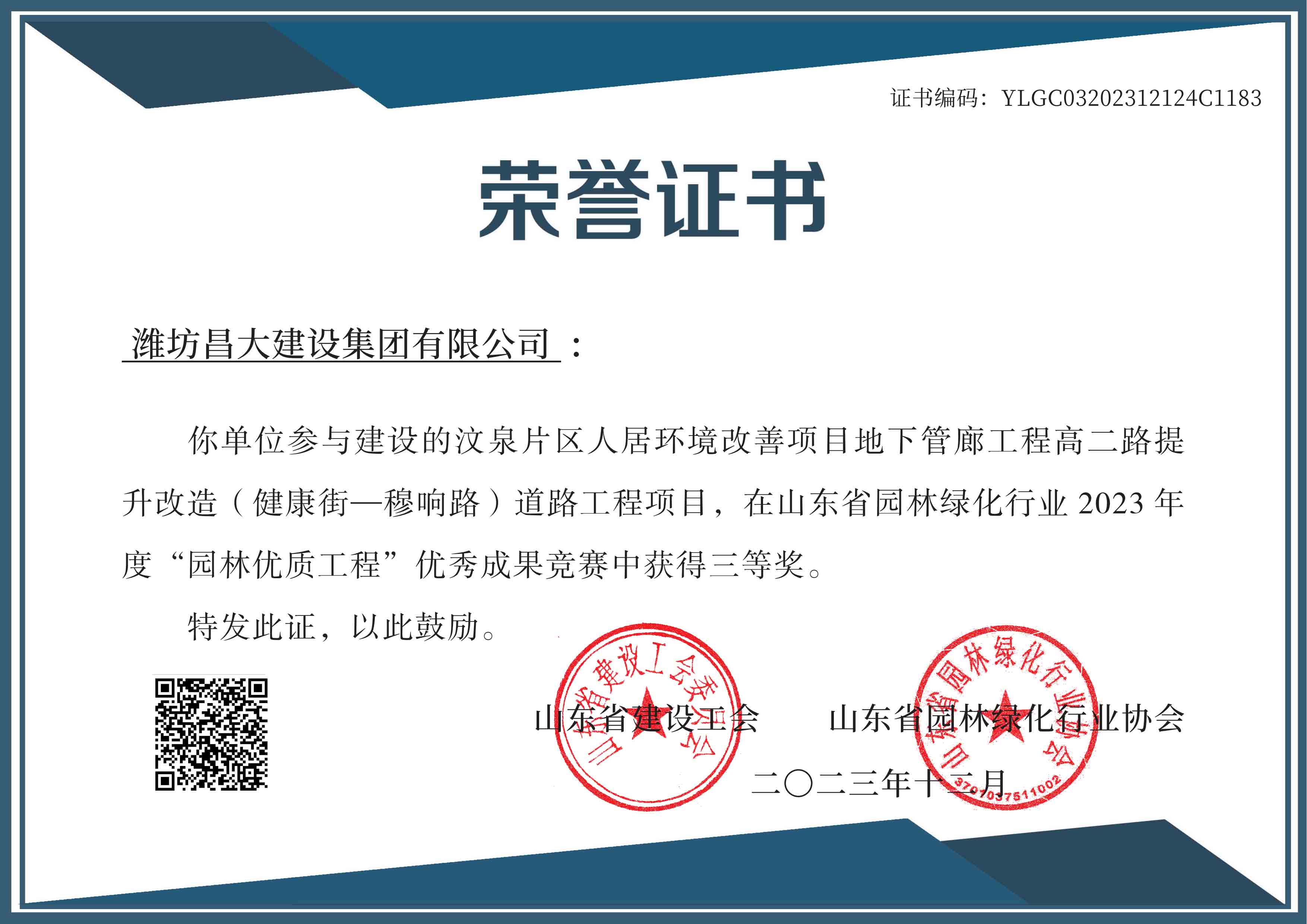 2023年度山東省園林優(yōu)質(zhì)工程三等獎(jiǎng)