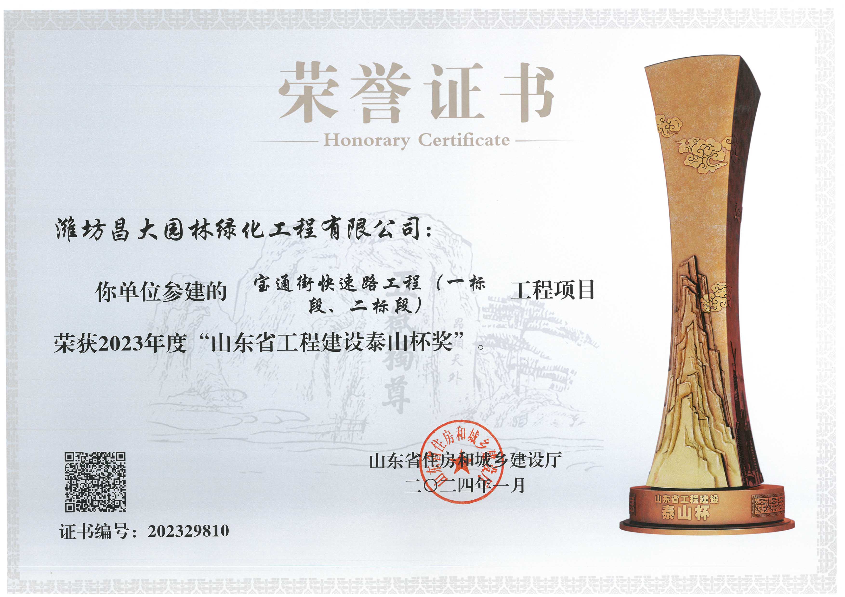 2023 年度山東省工程建設(shè)泰山杯獎(jiǎng)